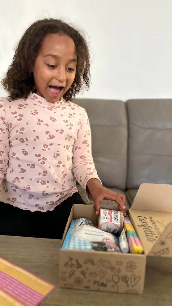 Offrir la box enfant mensuelle Mademoiselle Confettis, c’est choisir un cadeau qui combine émotion, surprise et qualité.